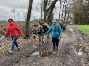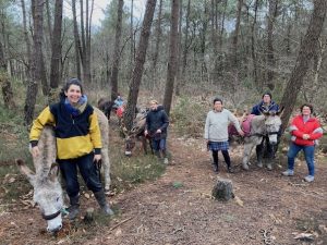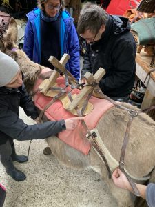 – Jour 2 : L’âne au travail (matinée axée sur la randonnée : découverte de l’ensemble du matériel de randonnée, préparation des ânes et départ en randonnée itinérante) + Les autres utilisations de l’âne (monte, attelage, traction, éco-pâturage, asino-médiation…, théorie et pratique)